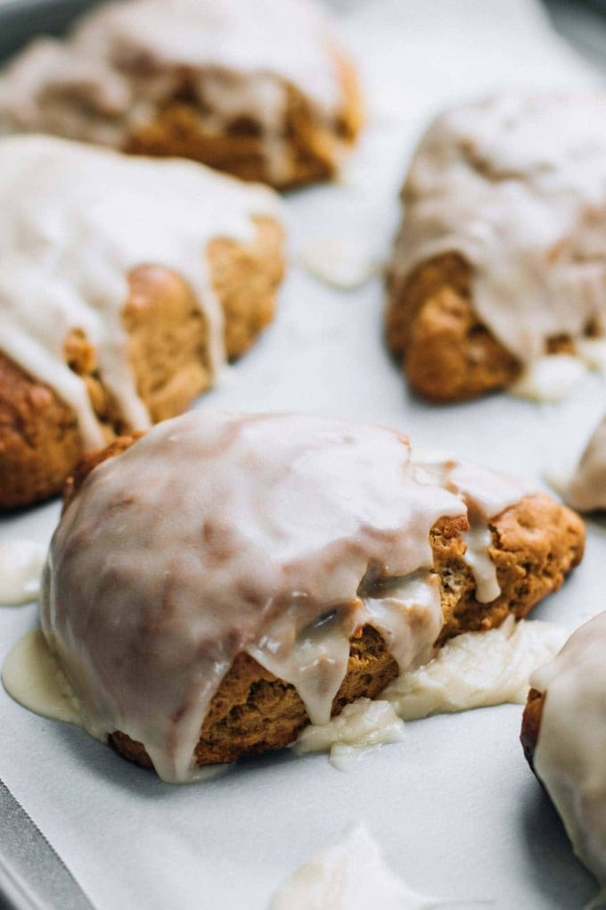 Lukier klonowy: W małej misce wymieszaj cukier puder z syropem klonowym i odrobiną mleka, aż powstanie gładki lukier. Polej nim jeszcze ciepłe scones. ![]()