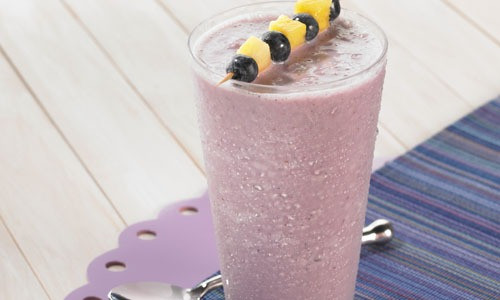 Przelej do wysokiej szklanki i udekoruj kilkoma borówkami