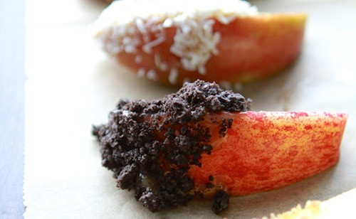 Każdy może stworzyć swoją własną kombinację – maczać plasterki jabłek w dipie, a następnie w ulubionych posypkach! 😋