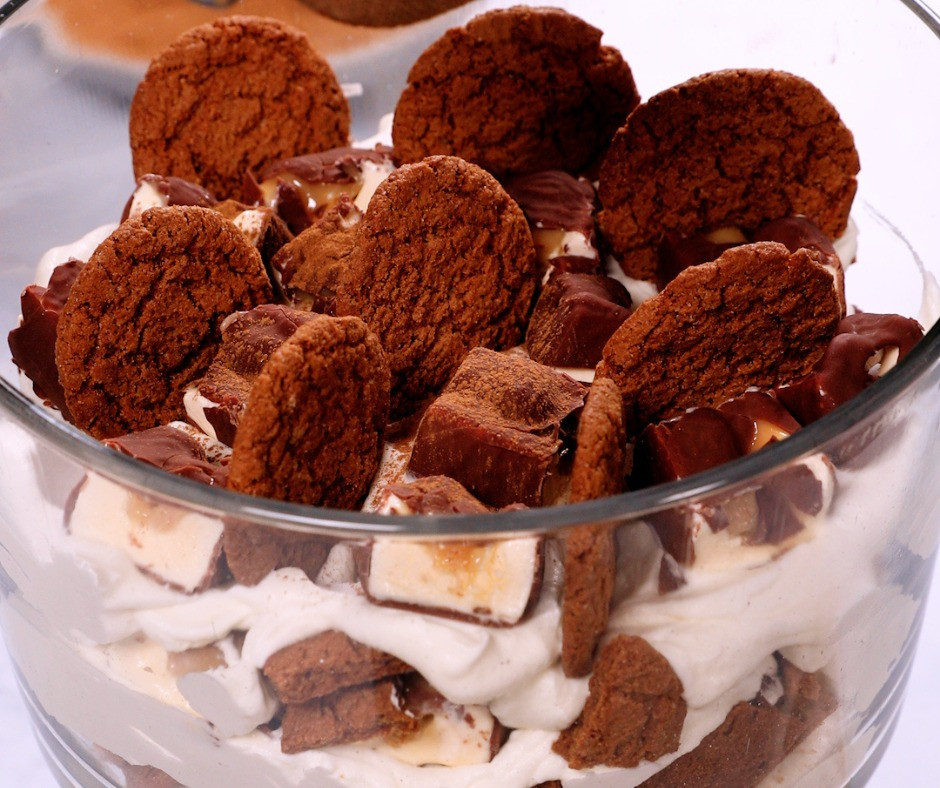 Ten Czekoladowo-Imbirowy Trifle Lodowy to połączenie kremowych lodów
