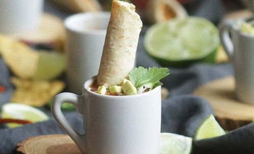 Te mini tortilla shooters podawane w kieliszkach i chrupiące taquitos z kurczakiem i serem to hit każdego spotkania! ![]()