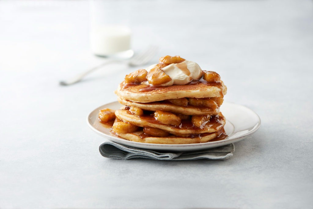 Czy jest coś lepszego niż miękkie naleśniki połączone z karmelizowanymi bananami i słodkim sosem?