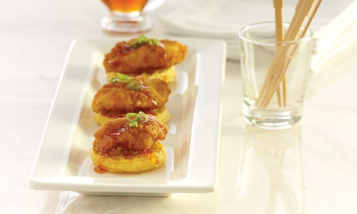 Kurczaka obtocz w panierce i smaż na złoto w rozgrzanym oleju.