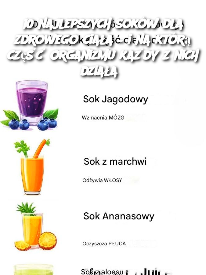 Oto 10 najzdrowszych soków , które warto wprowadzić do swojej rutyny – każdy z nich ma inne działanie i wspiera inny obszar naszego zdrowia.