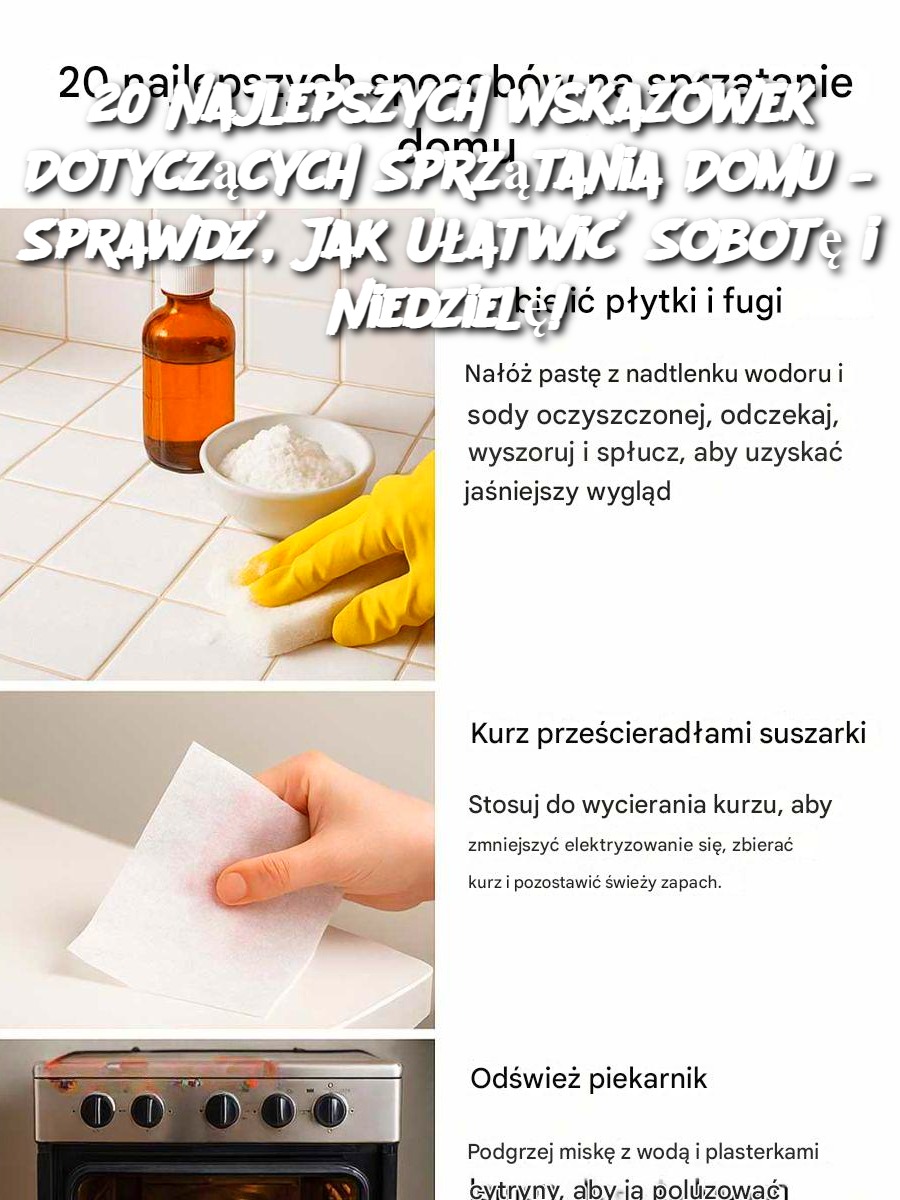 Zbieramy dla Ciebie 20 sprawdzonych wskazówek , które pomogą Ci szybciej i skuteczniej uporać się z codziennym brudem, zapachami i plamami. Nie potrzebujesz drogich produktów — wystarczy kilka składników, które prawdopodobnie masz już w domu!