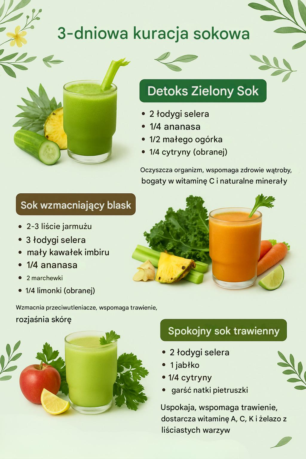 Zdrowy i orzeźwiający plan z wykorzystaniem soków na bazie selera, które pomagają w detoksykacji, wspomagają trawienie i poprawiają ogólne samopoczucie.
