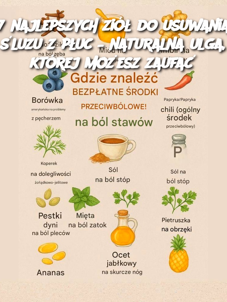 Gęsty, lepki śluz w klatce piersiowej to nie tylko przykry objaw przeziębienia czy alergii – to także uczucie duszności, kaszel i zmęczenie , które mogą utrzymywać się przez dłuższy czas. Szukasz sposobu na lekkie, skuteczne oczyszczenie dróg oddechowych bez sztucznych środków? Możesz uzyskać tę ulgę dzięki siły natury – a konkretnie 7 sprawdzonym ziołom, które wspierają układ oddechowy od wieków.