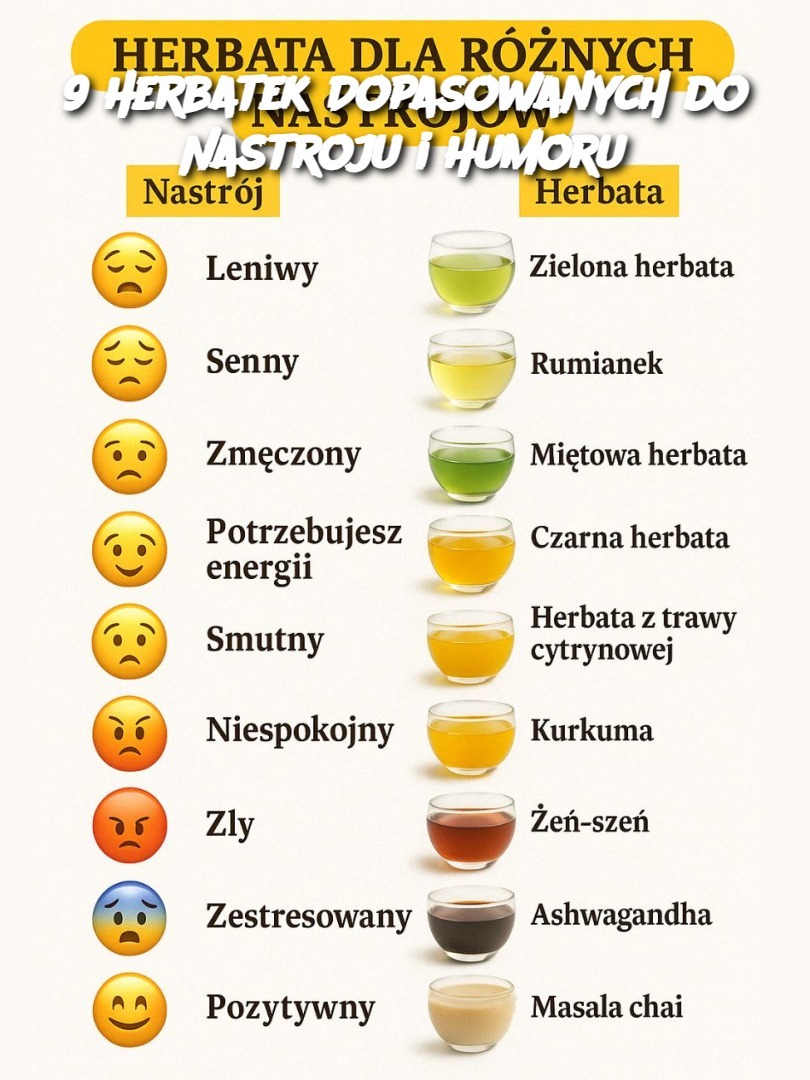 Herbata to napój, który nie tylko orzeźwia, ale również potrafi wpływać na nasze samopoczucie. W zależności od nastroju, możemy wybrać odpowiednią herbatę, która pomoże nam się zrelaksować, doda energii lub poprawi humor. Oto dziewięć rodzajów herbat, które idealnie pasują do różnych emocji i sytuacji.