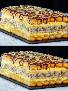 Ten wykwintny deser łączy w sobie delikatne warstwy ciasteczek lub biszkoptów, bogaty krem waniliowy i polewę czekoladową, posypane płatkami migdałów. Idealnie nadaje się na specjalne okazje lub na co dzień, aby rozpieścić rodzinę! Składniki: Na deser: 200 g ciasteczek lub biszkoptów 550 ml świeżego mleka krowiego 5 jajek 350 g cukru 300 g masła 1 … Read more