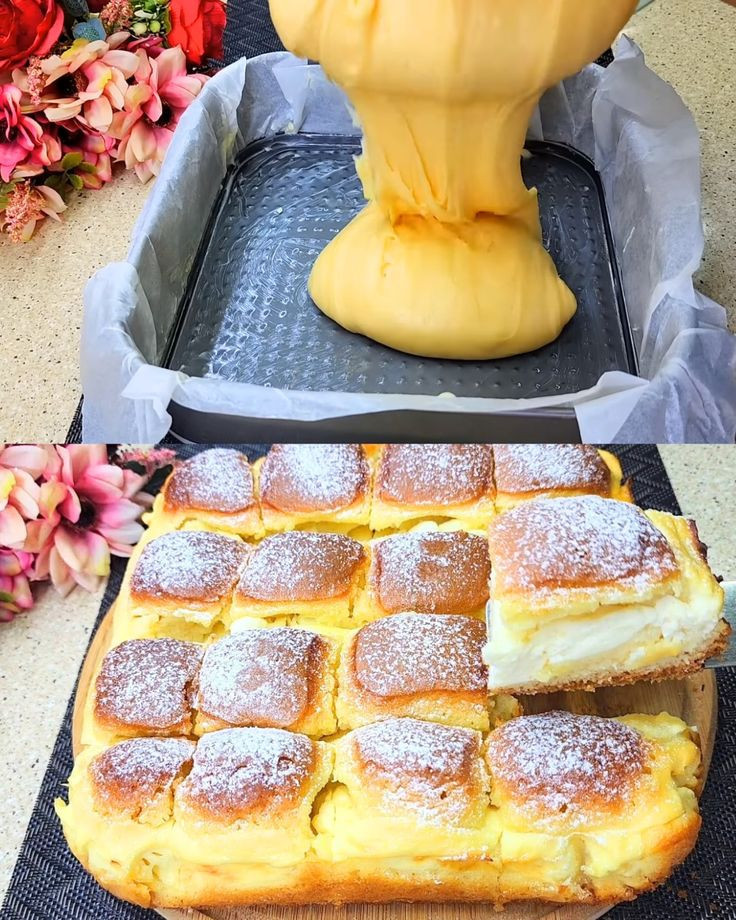 Ciasto najlepiej smakuje lekko ciepłe, zaraz po przygotowaniu.