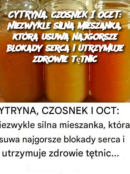 1 szklanka świeżo wyciśniętego soku z cytryny: Świeżo wyciśnięte soki z ekologicznych cytryn są bogate w witaminę C, która jest niezbędnym składnikiem odżywczym wspomagającym układ odpornościowy. Sposób przygotowania i stosowania: Do dużego słoika wlej ocet jabłkowy i dodaj rozgnieciony ząbek czosnku. Rozpuść miód w małym rondelku i dodaj sok z cytryny.