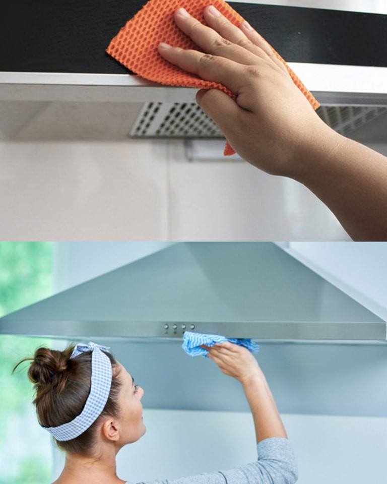 Szorowanie i wycieranie: Zanurz gąbkę lub ściereczkę w przygotowanym roztworze i dokładnie przetrzyj całą powierzchnię okapu. Zwróć szczególną uwagę na miejsca, gdzie tłuszcz osadza się najbardziej. W przypadku uporczywych zabrudzeń możesz posypać odrobinę sody oczyszczonej bezpośrednio na gąbkę i delikatnie szorować. Soda działa jak delikatny środek ścierny, nie rysując powierzchni.