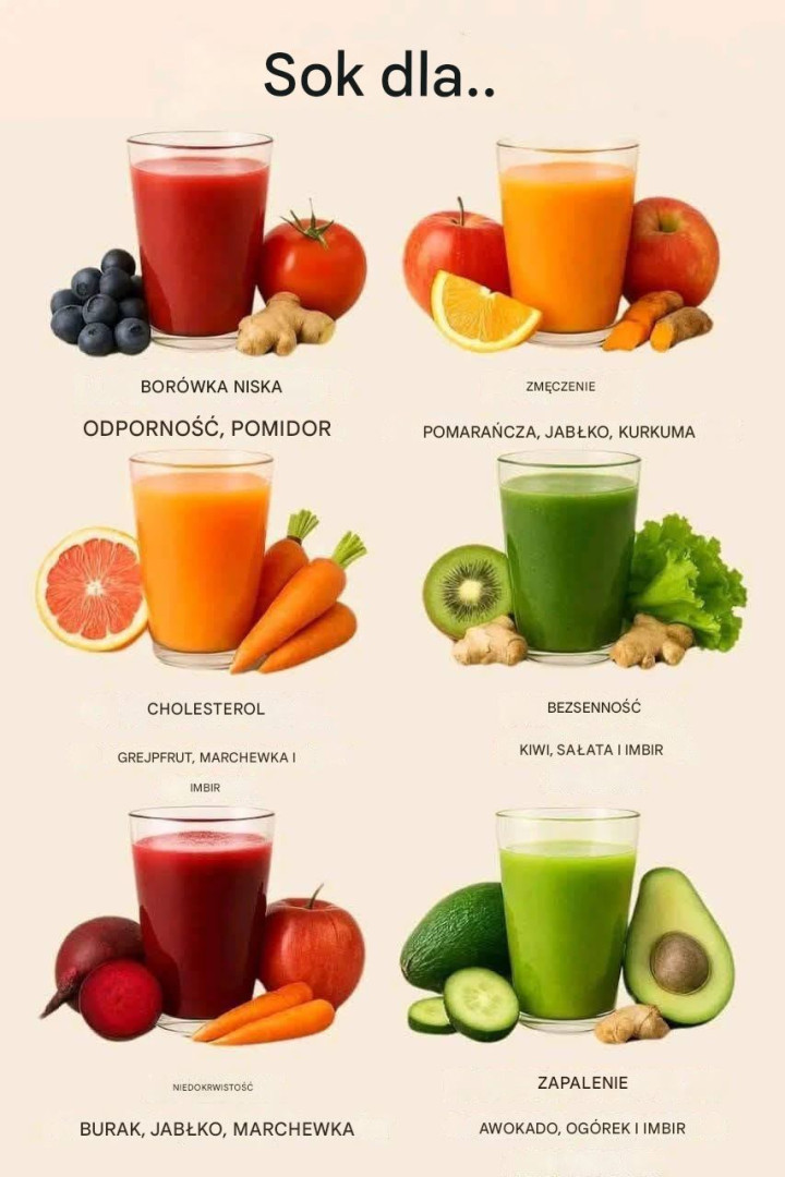 W dzisiejszym zabieganym świecie łatwo jest zaniedbać swoje zdrowie. Szybkie tempo życia, przetworzona żywność i chroniczny stres mogą prowadzić do wielu problemów zdrowotnych, od zmęczenia i problemów trawiennych po osłabioną odporność. Ale co, jeśli powiem Ci, że rozwiązanie może być tak proste, jak szklanka świeżo wyciśniętego soku? Soki warzywne i owocowe to prawdziwe bomby witaminowe, minerałowe i enzymatyczne, które w naturalny sposób wspierają regenerację organizmu. Przedstawiamy 6 wyjątkowych przepisów na soki, które pomogą Ci odzyskać witalność, wzmocnić odporność, poprawić trawienie i poczuć się odmłodzonym.