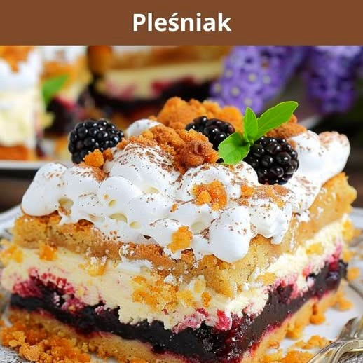 Pleśniak to klasyczne polskie ciasto, które zachwyca swoją warstwową strukturą i kontrastem smaków. Chociaż nazwa może brzmieć nieco zaskakująco, nawiązuje do charakterystycznego wyglądu ciasta, gdzie ciemne warstwy przeplatają się z jasnymi, a kropki dżemu czy bezy przypominają… pleśń! Bez obaw, jest to jedynie dowcipne nawiązanie, a sam pleśniak to prawdziwa uczta dla podniebienia. Idealnie łączy kruche ciasto, owocową kwaskowość, puszystą piankę i słodką posypkę, tworząc niezapomniane doznania smakowe. Jest to ciasto idealne na każdą okazję, od niedzielnego obiadu po świąteczne spotkania.
